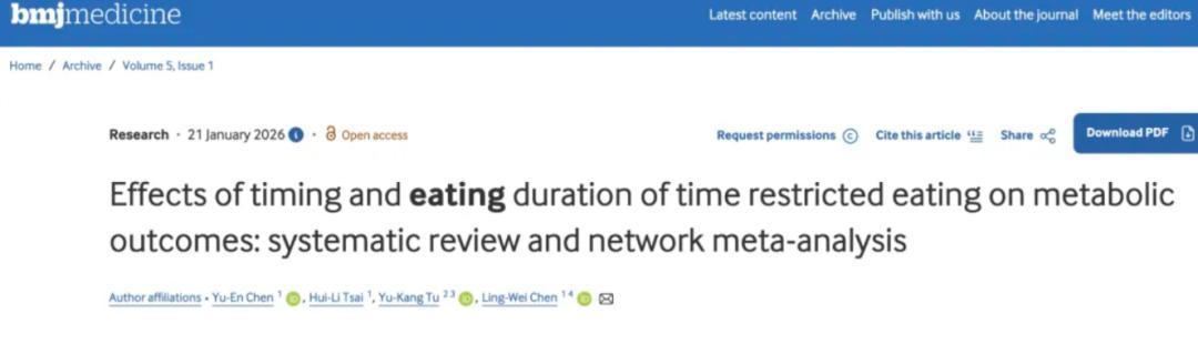 晚饭下午5点前吃,身体指标“自己”变好了把晚餐时间往挪一挪,真能这么神奇?2026年1月,国际期刊《英国医学杂志》子刊《英国医学杂志-医学》(BMJ Medicine)发表的一项重磅研究发现,过了下午5点不吃东西(把晚餐在下午5点前吃完),能最佳地改善代谢效果。
